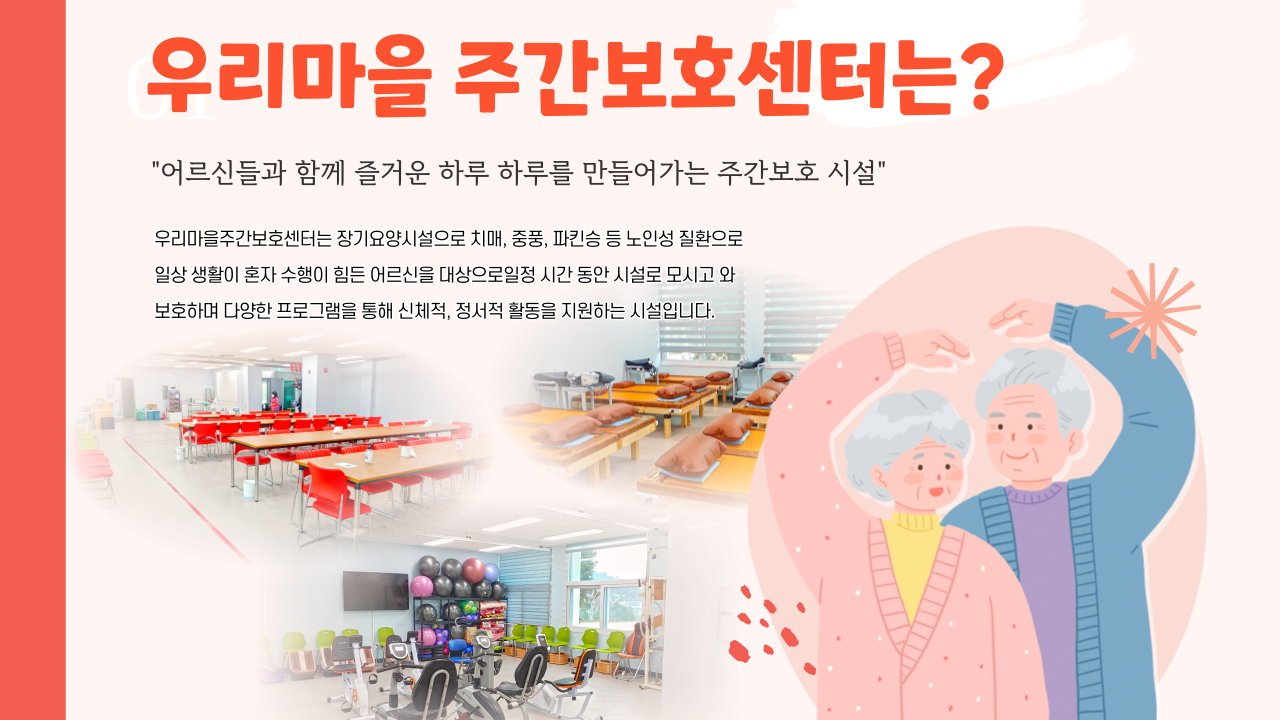 ¿ì¸®¸¶À»ÁÖ°£º¸È£¼¾ÅÍ´Â ¾î¸£½Åµé°ú ÇÔ²² Áñ°Å¿î ÇÏ·ç ÇϷ縦 ¸¸µé¾î°¡´Â ÁÖ°£º¸È£ ½Ã¼³ÀÔ´Ï´Ù!